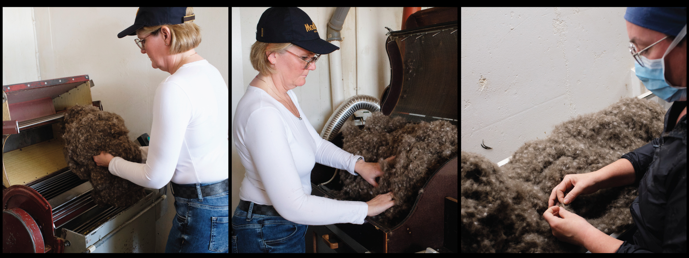 Le nettoyage du duvet est un rituel de précision. D’abord séché et grossièrement trié à la main, il est ensuite doucement chauffé à 120 °C. Le processus se poursuit grâce à des machines islandaises spécialisées, conçues en 1959 spécifiquement à cet effet : la première élimine brindilles et fragments de coquilles laissés après l’éclosion, tandis que la seconde sépare délicatement les plumes du précieux duvet. Ce qui suit n’est pas une simple vérification de qualité, mais une étape finale, essentielle, réalisée entièrement à la main. Une à une, les plumes résiduelles emprisonnées dans la structure compacte du duvet sont retirées avec soin, ne laissant que le duvet d’eider le plus pur, dans son état le plus naturel et intact.