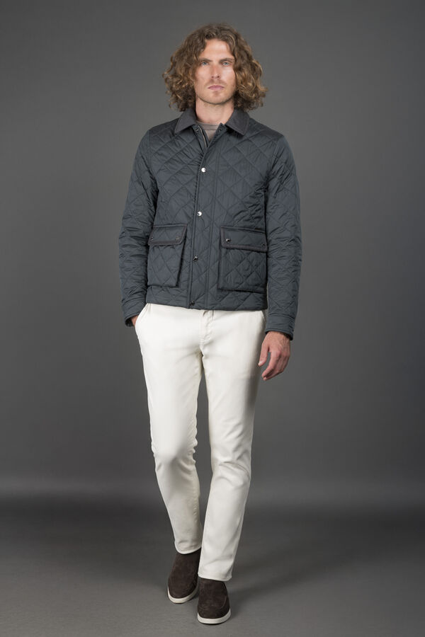 Quilted checkered jacket padded with wadding, belonging to the Acqua line (1 umbrella). Made from elegant and refined water-repellent technical fabric with a shimmering effect.